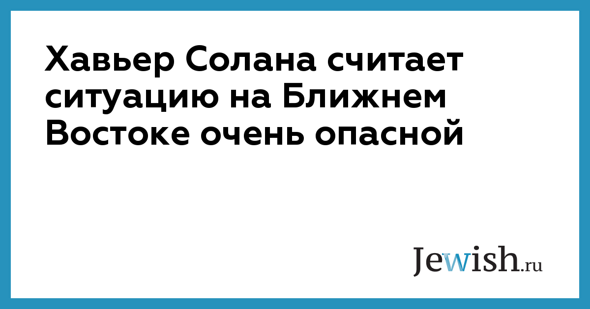 Хавьер Солана считает ситуацию на Ближнем Востоке очень опасной