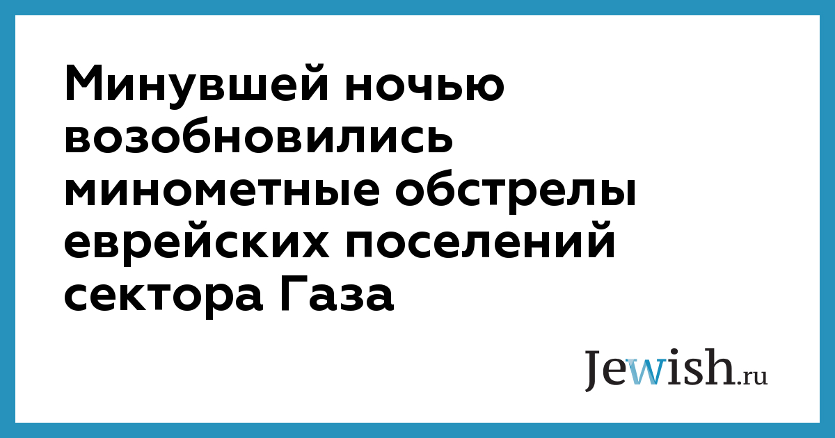 Минувшей ночью возобновились минометные обстрелы еврейских поселений сектора Газа