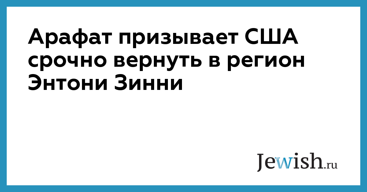 Арафат призывает США срочно вернуть в регион Энтони Зинни