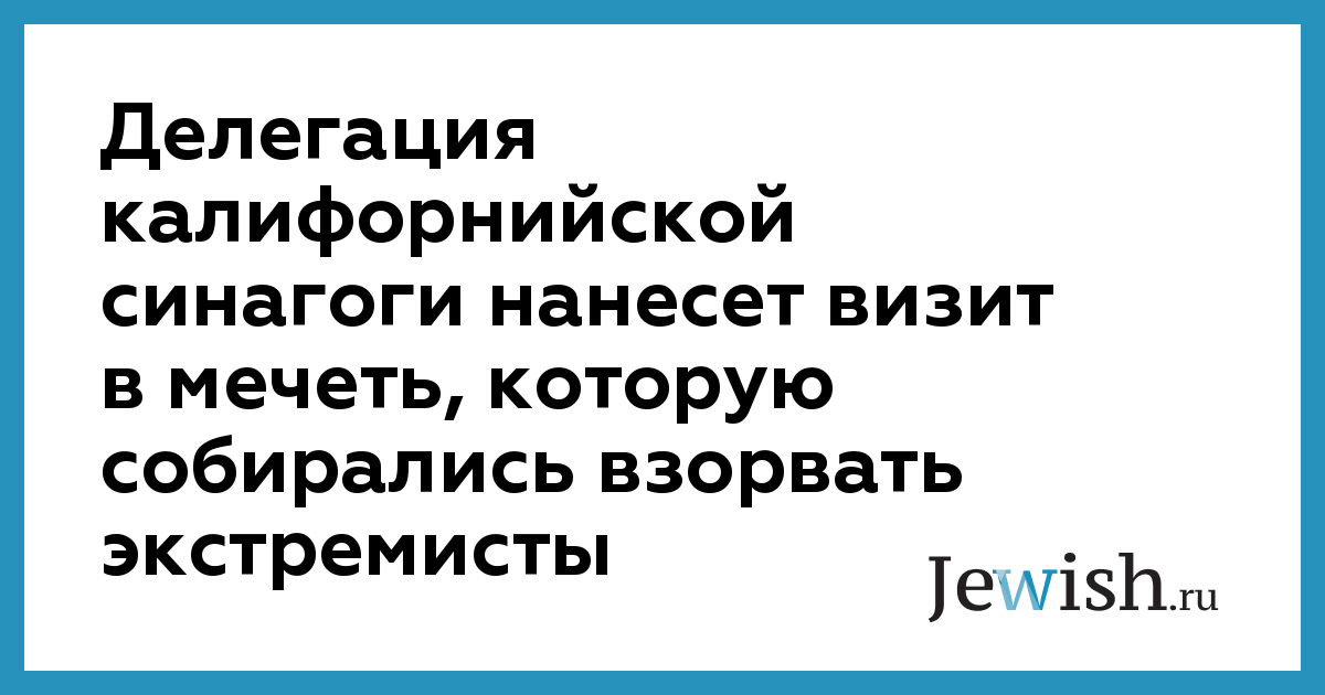 Руководители калифорнийской синагоги нанесут дружественный визит в ту самую мечеть, которую, как предполагается, хотели взорвать еврейские экстремисты. Конгрегация синагоги Вэлли Бейт Шалом, одной из крупнейших в окрестностях Лос-Анджелеса, приняла приглашение направить делегацию своих прихожан в мечеть короля Фахда для того, чтобы принять участие в совместной молитве. Внимание прессы Соединенных Штатов было привлечено к этой мечети после того, как агенты ФБР арестовали двоих еврейских экстремистов – членов запрещенной военизированной организации "Лига защиты евреев" по обвинению в заговоре с целью организации взрыва этой мечети, одной из крупнейших в Калифорнии, а также убийства конгрессмена арабского происхождения. Оба арестованных заявили о своей невиновности. "Мы, как евреи и приверженцы еврейской Традиции, должны прийти с миром к этим людям — мусульманам, несмотря на всю враждебность, которую они могут испытывать по отношению к нам", — заявил журналистам раввин синагоги Вэлли Бейт Шалом Гарольд Шульвайс. – "Если мы не сделаем этого, то нам останется всю оставшуюся жизнь сдаваться на милость генералов и адмиралов, правящих миром".