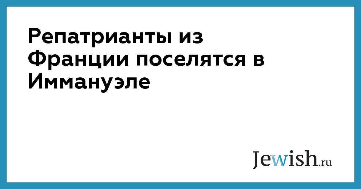 Репатрианты из Франции поселятся в Иммануэле