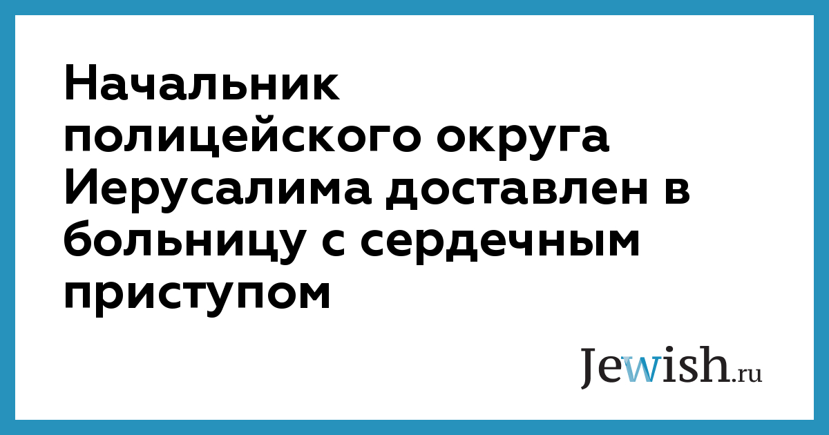 Начальник полицейского округа Иерусалима доставлен в больницу с сердечным приступом