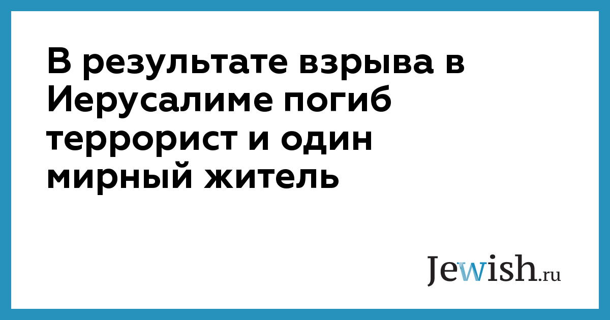 В результате взрыва в Иерусалиме погиб террорист и один мирный житель