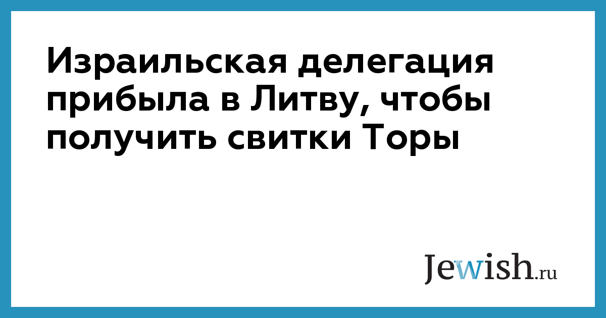 Израильская делегация прибыла сегодня в Вильнюс для того, чтобы получить от литовского правительства 30 свитков Торы и сотни священных еврейских книг, которые были в свое время изъяты нацистами, а в последние десятилетия хранились в городской библиотеке Вильнюса. Возглавляют делегацию заместитель министра иностранных дел Израиля Михаэль Мельхиор и главный ашкеназский раввин Исраэль Меир Лау. Делегация сегодня же вернется на родину, где состоится торжественный прием священных книг при участии президента страны Моше Кацава.