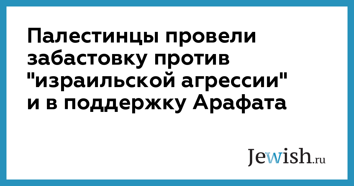 На пять минут замерла в среду жизнь на всей территории Палестинской национальной автономии. По призыву Союза арабских юристов, который поддержало палестинское руководство, после полудня на Западном берегу реки Иордан и в секторе Газа состоялась краткосрочная всеобщая забастовка. Ее цель — осуждение продолжающейся "агрессии Израиля" против палестинского народа и выражение солидарности с главой Палестинской национальной администрации Ясиром Арафатом, который почти два месяца изолирован Израилем в своей резиденции в городе Рамалла.