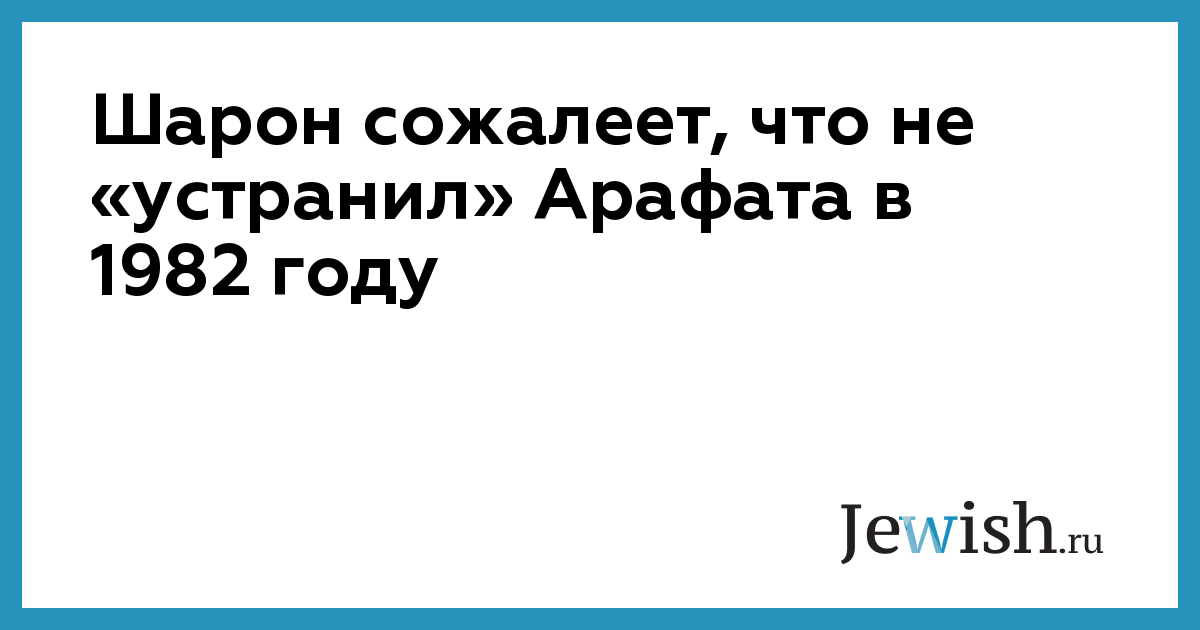 Премьер-министр Израиля Ариэль Шарон заявил в интервью, опубликованном в четверг, что Израиль должен был «устранить» Ясира Арафата в 1982 году, но теперь палестинский лидер все еще может стать сильным партнером по мирным переговорам. «В Ливане было достигнуто соглашение о том, что Арафат не будет устранен. Если честно, я сожалею об этом», — сказал Шарон в интервью израильской газете Maariv.