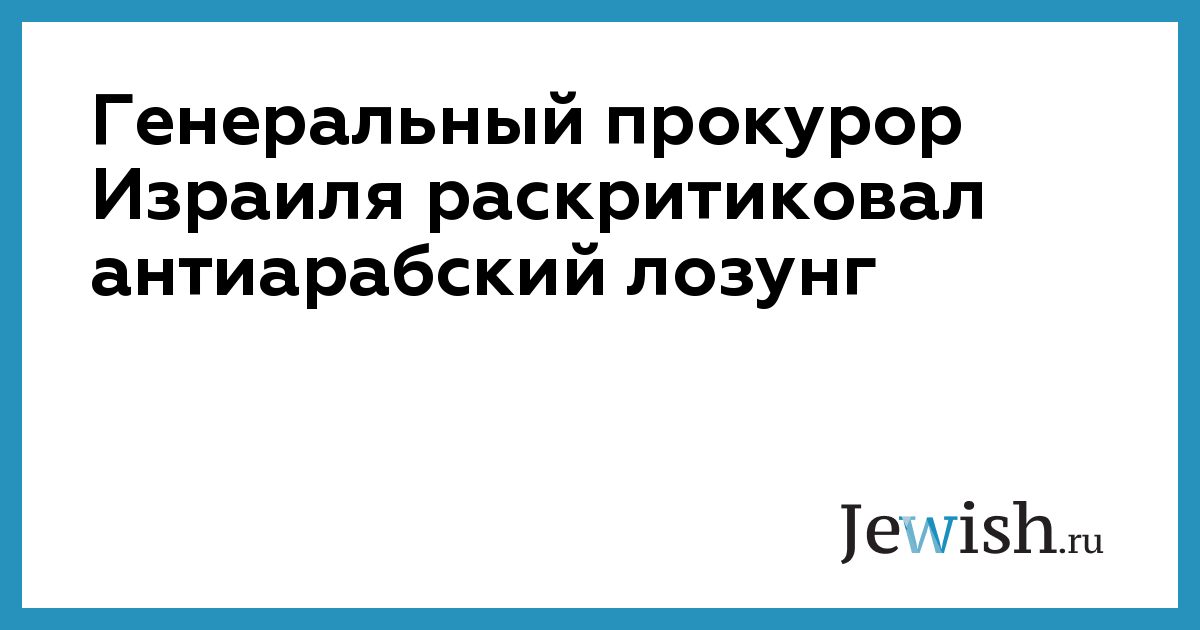 Генеральный прокурор Израиля раскритиковал антиарабский лозунг