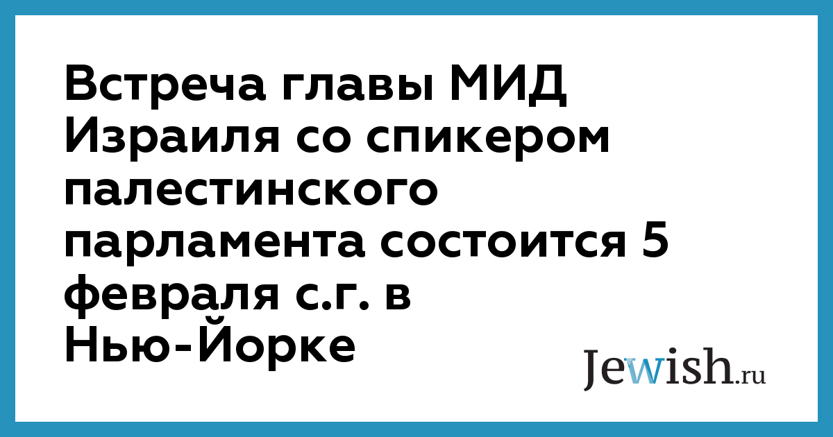 Встреча главы МИД Израиля со спикером палестинского парламента состоится 5 февраля с.г. в Нью-Йорке