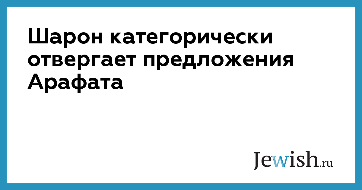 Премьер-министр Израиля Ариэль Шарон категорически отверг план ближневосточного урегулирования, предложенный Ясиром Арафатом. По его словам, в плане мирного урегулирования Я.Арафата содержатся требования, неприемлемые для израильского государства. Напомним, лидер Палестинской национальной администрации Ясир Арафат написал в New-York Times о том, что палестинцы видят мир с Израилем на условиях полного прекращения израильской оккупации, то есть отхода Израиля на границы 1968г. Он также заявил о необходимости объявления Иерусалима открытым городом и столицей двух государств, израильского и палестинского. Кроме того, Я.Арафат потребовал признать право на возвращение беженцев, покинувших палестинские территории с 1948г. В ответ А.Шарон отметил, что эти предложения Я.Арафата были сделаны в уравновешенном и умеренном тоне, однако "это всего лишь слова". По заявлению премьер-министра Израиля, "Арафат остается для нас вне игры, поскольку он возглавляет коалицию терроризма".
