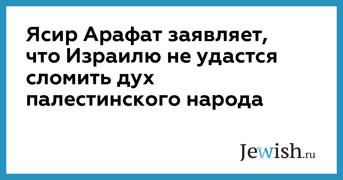 Председатель исполкома Организации освобождения Палестины, глава палестинской национальной администрации Ясир Арафат в понедельник заявил, что Израилю не удастся сломить дух палестинского народа.