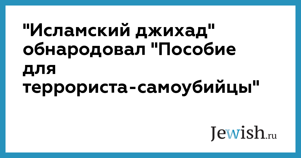 4 февраля три лидера палестинской террористической группировки "Исламский джихад" представили всей мыслящей и читающей исламской публике еще один вариант "Пособия для террористов-самоубийц". Как говорится в предисловии книги, "данное пособие является чрезвычайно полезным для людей, готовых отдать свою жизнь в ходе "священной войны с неверными".