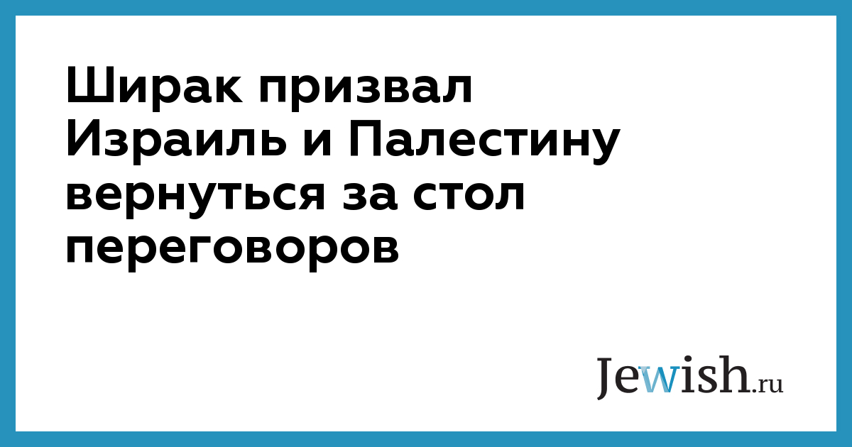 Президент Франции Жак Ширак призвал Израиль и Палестину вернуться за стол переговоров и продолжить мирный диалог. Об этом он заявил после неформальной встречи с канцлером Германии Герхардом Шредером в Берлине. На встрече также присутствовали премьер-министр Франции Лионель Жоспен и главы внешнеполитических ведомств обеих стран.