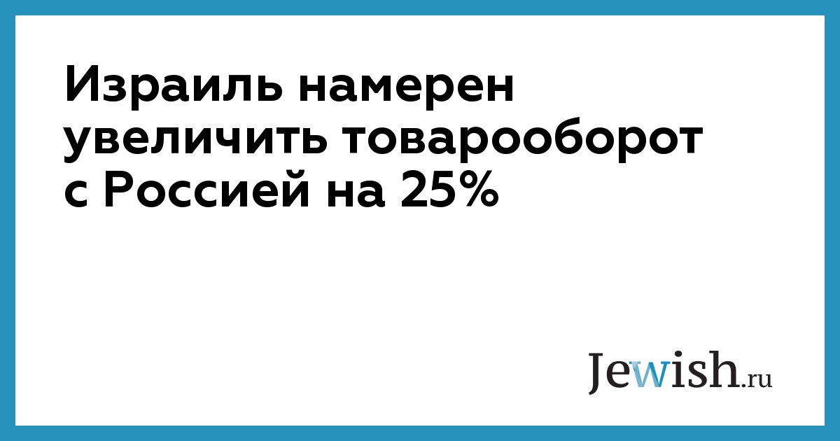 Израиль намерен увеличить товарооборот с Россией на 25%. Об этом сообщил сегодня на пресс-конференции в Москве президент Торгово-промышленной палаты Израиль-Россия и СНГ Лев Левиев. По его словам, такому увеличению будет способствовать и бизнес-центр, открытый сегодня в Москве. В нем будут представлены ведущие израильские производители товаров, услуг и технологий.