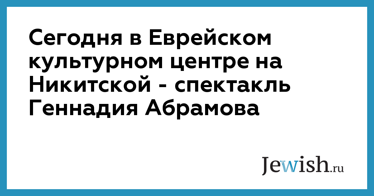 Сегодня в Еврейском культурном центре на Никитской — спектакль Геннадия Абрамова