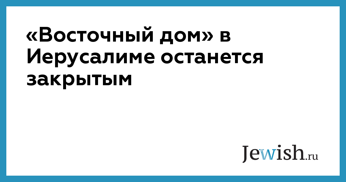 «Восточный дом» в Иерусалиме останется закрытым