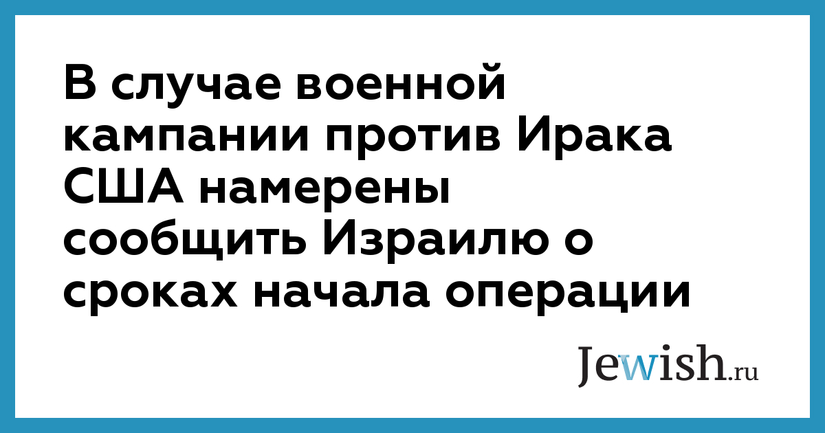 В случае военной кампании против Ирака США намерены сообщить Израилю о сроках начала операции