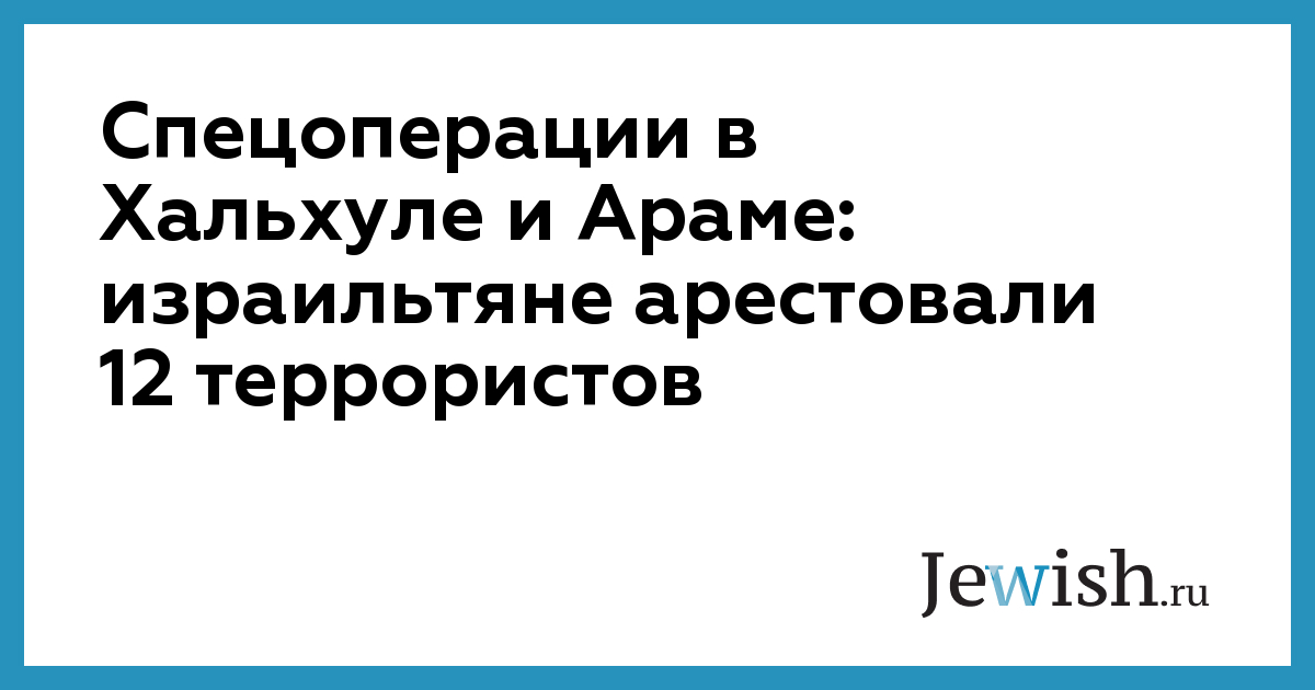 Двое палестинских террористов были арестованы в результате спецоперации израильской армии в деревне Хальхуль, расположенной близ Хеврона. Как сообщает газета Ha'aretz, один из арестованных является членом военизированного крыла ФАТХ, а другой — боевиком "Исламского джихада".