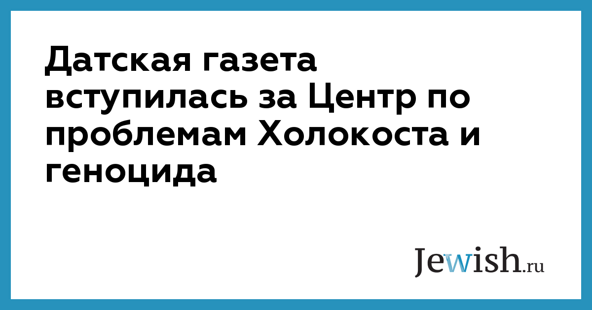 13 февраля датская газета "Берлингске тиден" обратилась к правительству с просьбой не сокращать в процессе избавления от полуавтономных организаций финансирование датскому Центру по проблемам Холокоста и геноцида, сообщает MIGnews.com.