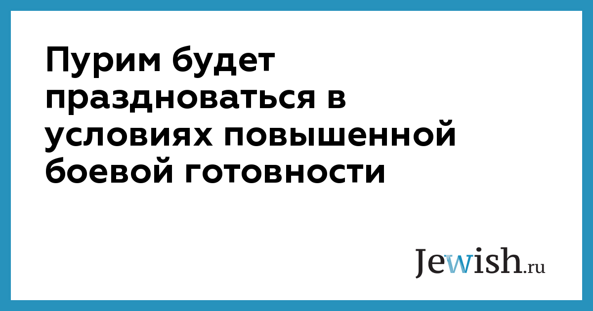 Пурим будет праздноваться в условиях повышенной боевой готовности