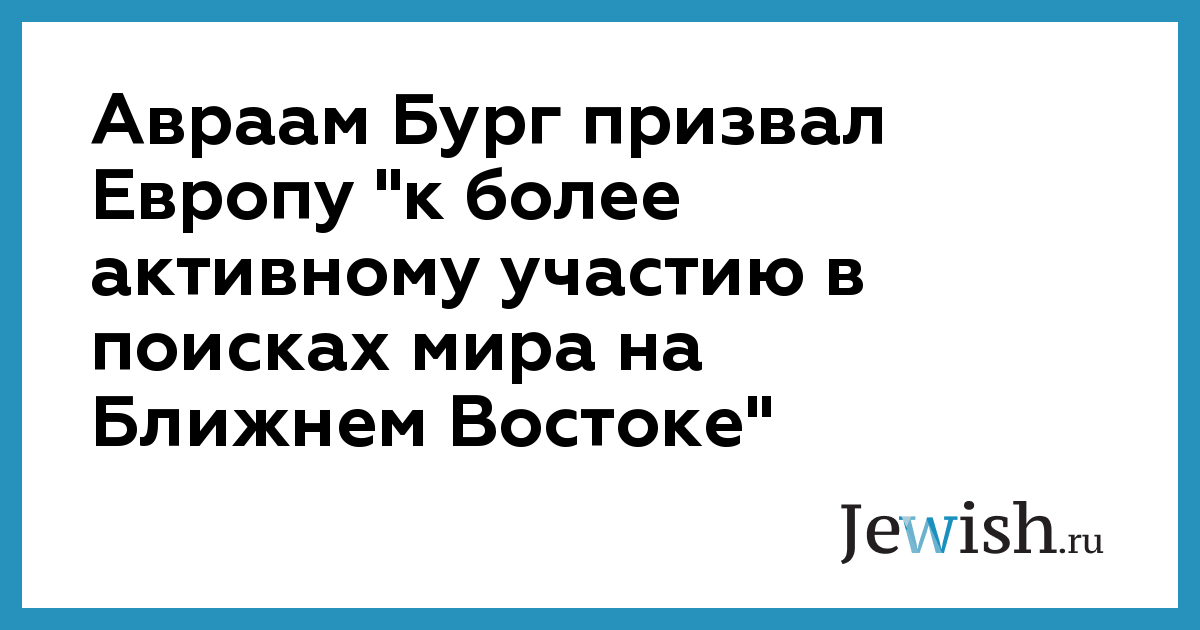 Председатель парламента Израиля (Кнессета) Авраам Бург, находящийся с официальным визитом в столице Греции Афинах, призвал ЕС "к более активному участию в поисках мира на Ближнем Востоке". Депутат обсудил ситуацию на Ближнем Востоке и роль ЕС в возобновлении мирного процесса в регионе с министром иностранных дел Греции Георгиосом Папандреу. В частности, речь шла, о том, что в самом Кнессете сейчас нет единого мнения о перспективах палестино-израильских переговоров, несмотря на то, что глава израильского МИД Шимон Перес постоянно заявляет, что "ни по какой причине мы не должны исключать диалог".
