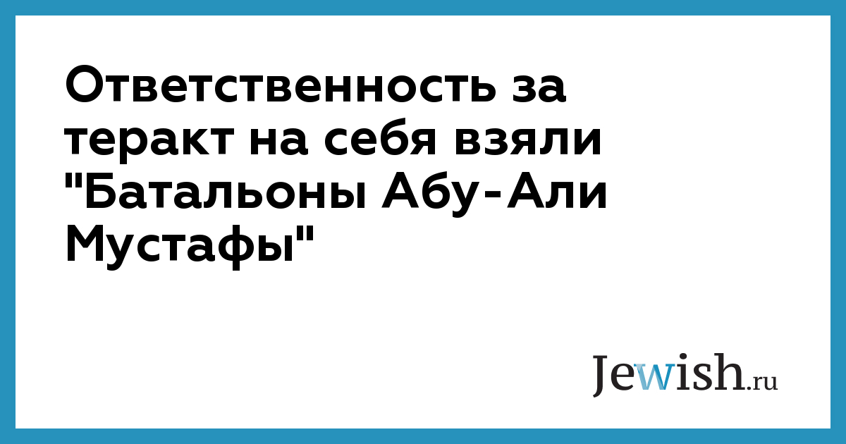 Ответственность за этот теракт взяла на себя группировка "Батальоны Абу-Али Мустафы", действующая в составе "Демократического фронта освобождения Палестины". Представитель терористической организации сообщил об этом в редакцию катарской телекомпании al-Jazeera.