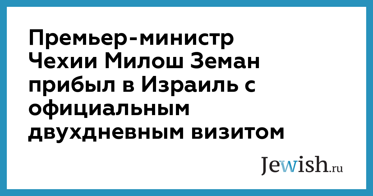Премьер-министр Чехии Милош Земан прибыл в воскресенье в Израиль с официальным двухневным визитом.