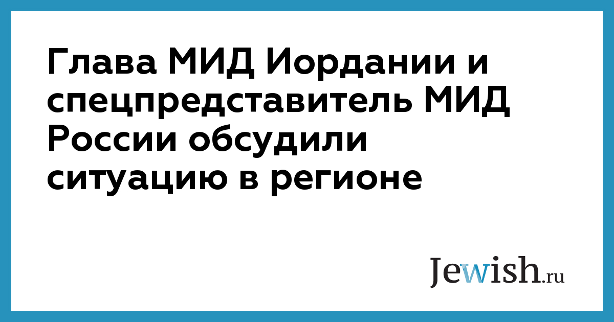 Об этом сообщил глава иорданского МИДа. Аль-Муашшир назвал переговоры с российским спецпредставителем "чрезвычайно плодотворными". Он подчеркнул, что Россия выражает озабоченность ситуацией в регионе, прежде всего на палестинских территориях, и постоянно отслеживает развитие обстановки во всех ее аспектах.