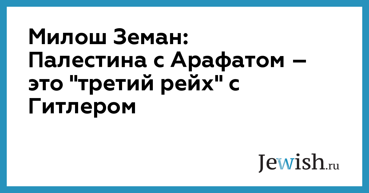 Комментируя происходящее в зоне палестино-израильского конфликта, Земан заявил, что, по его мнению, администрация Палестинской автономии во главе с Ясиром Арафатом один к одному напоминает ему "третий рейх" во главе с Адольфом Гитлером. Кроме того, чешский премьер предостерег израильское руководство от перехода к политике "соглашательства" и подчеркнул, что не может идти и речи о ведении переговоров с террористами.