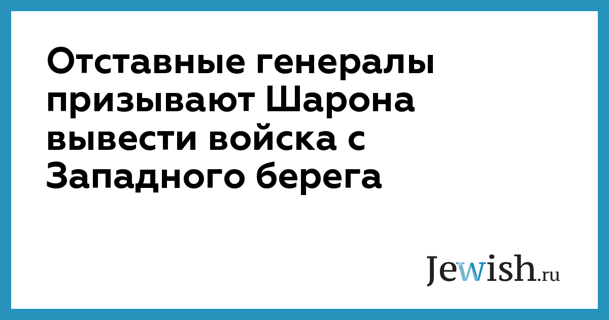 В Израиле сотни генералов и полковников запаса и сотрудники разведслужб, объединенных в Совет мира и безопасности, призвали премьер-министра страны Ариэля Шарона безоговорочно вывести войска с Западного берега и сектора Газа.