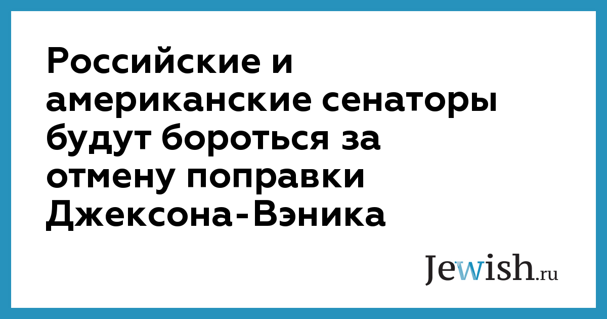 Рабочая группа "Сенат — Совет Федерации" будет настаивать на отмене поправки Джексона-Вэника, являющейся "ключевым моментом, тормозящим российско-американскую торговлю".