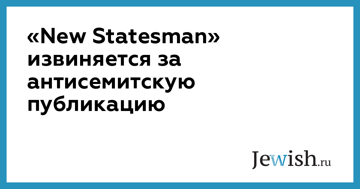 Три недели тому назад на обложке британского журнала «New Statesman», который считается в стране одним из наиболее влиятельных изданией левого толка, появился рисунок, который многие многими читателями был воспринят как антисемитский выпад. На обложке, на фоне британского государственного флага была изображена огромная звезда Давида. Подпись под рисунком гласила: «Кошерные злонамерения?» За последнее время журнал опубликовал серию статей о еврейской общине Великобритании, которая, по мнению авторов этих статей, занимается активным «лоббированием» с целью повлиять на государственных деятелей, принимающих важные политические решения. Иллюстрацией к этим статьям стала обложка журнала. Редактор издания, Питер Уилби, опубликовал материал, в котором приносит извинения за обложку номера, которая, по мнению многих читателей, вызывает антисемитские ассоциации.