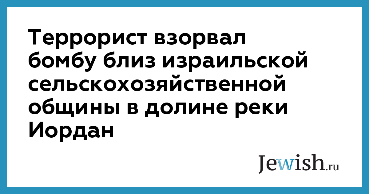 Террорист взорвал бомбу близ израильской сельскохозяйственной общины в долине реки Иордан. По предварительным данным, жертв инцидента с израильской стороны нет. Израильская полиция подтвердила данные сообщения. В настоящее время ведется расследование происшедшего.