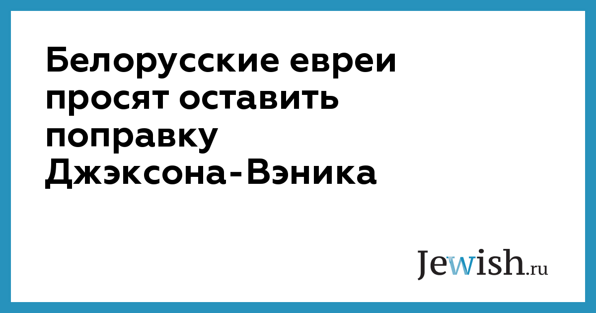Международная ассоциация белорусских евреев призвала конгресс США не отменять в отношении Белоруссии действие поправки Джексона-Вэника. Яков Гутман, глава Международной ассоциации белорусских евреев, заявил, что учитывая ситуацию, в которой находятся белорусские евреи, об отмене этой поправки не может быть и речи.