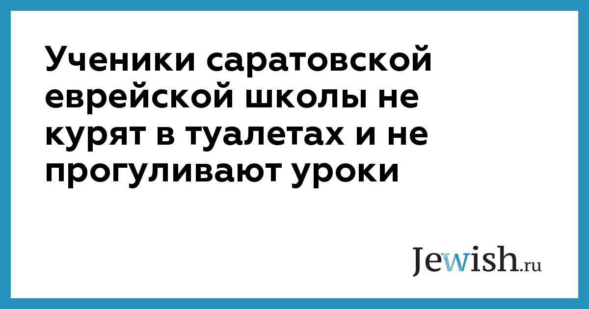 Саратовской общеобразовательной еврейской школе исполнился один год. Как сообщают "Известия", многие ребята перешли сюда из других учебных заведений. Всех учеников привозят и развозят по домам на школьном автобусе, кормят три раза в день. На 50 школьников 19 педагогов, при этом в классах минимум 3 учащихся, максимум — восемь. В школе введено углубленное изучение информатики и английского. В обязательной программе — иврит. В школе ребята находятся целый день. После обеда — занятия в кружках и секциях, а в театральной студии разыгрывают эпизоды из истории еврейского народа. Отдельные часы — на выполнение домашних заданий. Как сообщила корреспонденту "Известий" директор школы Маргарита Карлышева, "у нас нет неблагополучных семей, наши дети не увлекаются куревом и не прогуливают уроки".