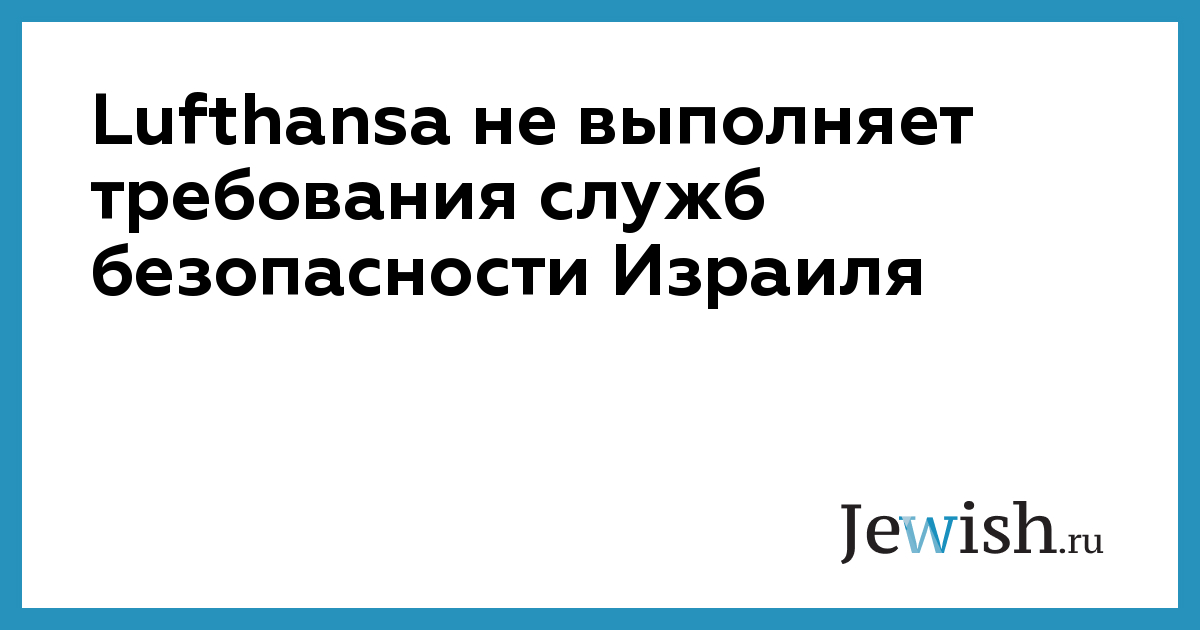Как заявили 18 февраля представители министерства транспорта Израиля, германская авиакомпания Lufthansa не выполняет все условия обеспечения безопасности на рейсах Мюнхен — Тель-Авив, что может привести к введению соответствующих санкций в отношении этой компании. Директор представительства Lufthansa в Израиле Стефан Симх направил письмо на имя руководителя службы безопасности министерства транспорта Дэни Шинура с просьбой предоставить компании один месяц на то, чтобы выполнить все требования, касающиеся обеспечения безопасности кабины пилотов на борту самолетов Airbus A-321.