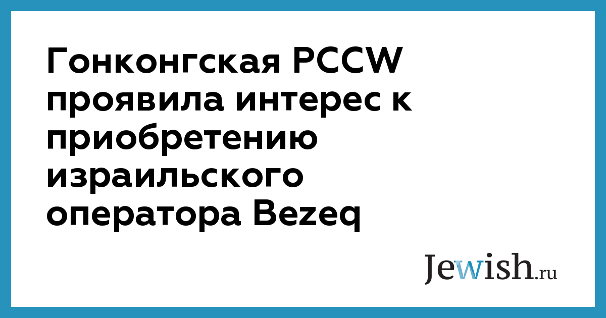 Ведущая гонконгская телекоммуникационная компания Pacific Century CyberWorks Ltd (PCCW) сообщила о своем интересе к приобретению контрольного пакета акций израильского национального оператора Bezeq Israel Telecom. Пока это лишь намерение, за которым последует тщательное изучение последствий возможного объединения активов компаний.