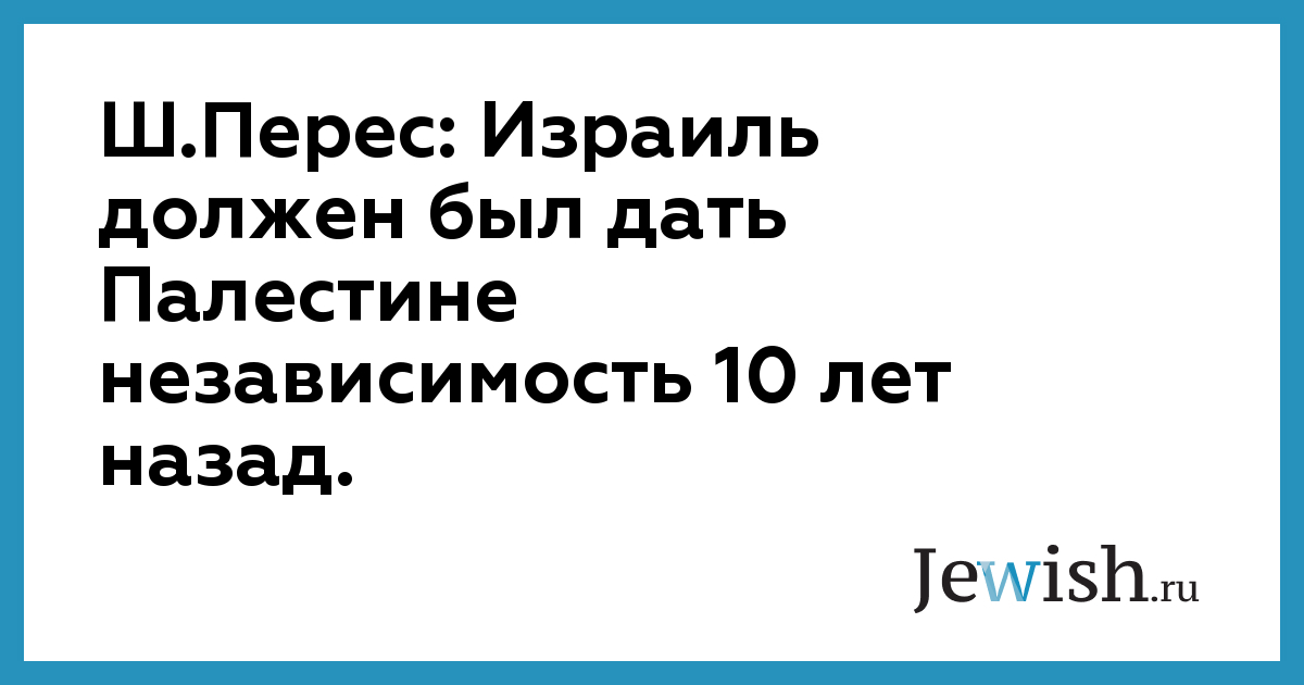 Министр иностранных дел Израиля Шимон Перес признал, что его проект о мире между Израилем и Палестиной потерпел крах и что Израилю следовало дать Палестине независимость уже 10 лет назад.