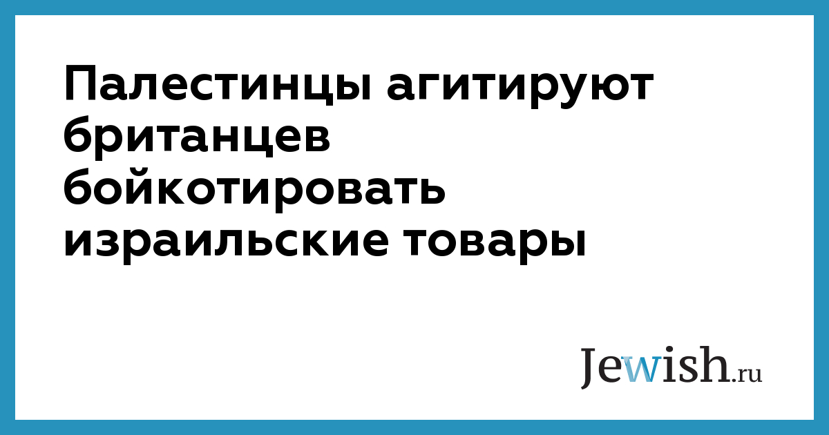 Палестинская организация купила часть полосы в британской газете Independent и опубликовала объявление с призывом бойкотировать израильскую продукцию в торговых центрах Великобритании. В сообщении, которое напечатано на фоне фотографии палестинской девочки за решеткой, содержится призыв к потребителям воздержаться от покупки любых израильских товаров, "из-за варварского отношения Израиля к палестинскому населению". Данный шаг является частью палестинской пропагандистской кампании, в рамках которой по супермаркетам и универмагам Лондона также были разосланы тысячи брошюр соответствующего содержания. Как передает NTVRU.com со ссылкой на сетевое издание "Новости Online", кампания, которую финансирует анонимная палестинская организация, носит название "Бойкот израильским товарам".