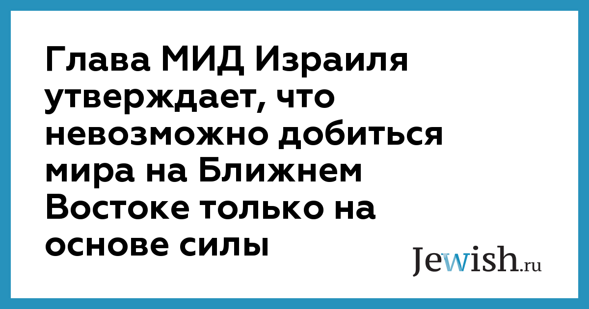 Глава МИД Израиля утверждает, что невозможно добиться мира на Ближнем Востоке только на основе силы
