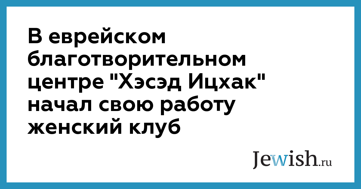 В еврейском благотворительном центре "Хэсэд Ицхак" начал свою работу женский клуб