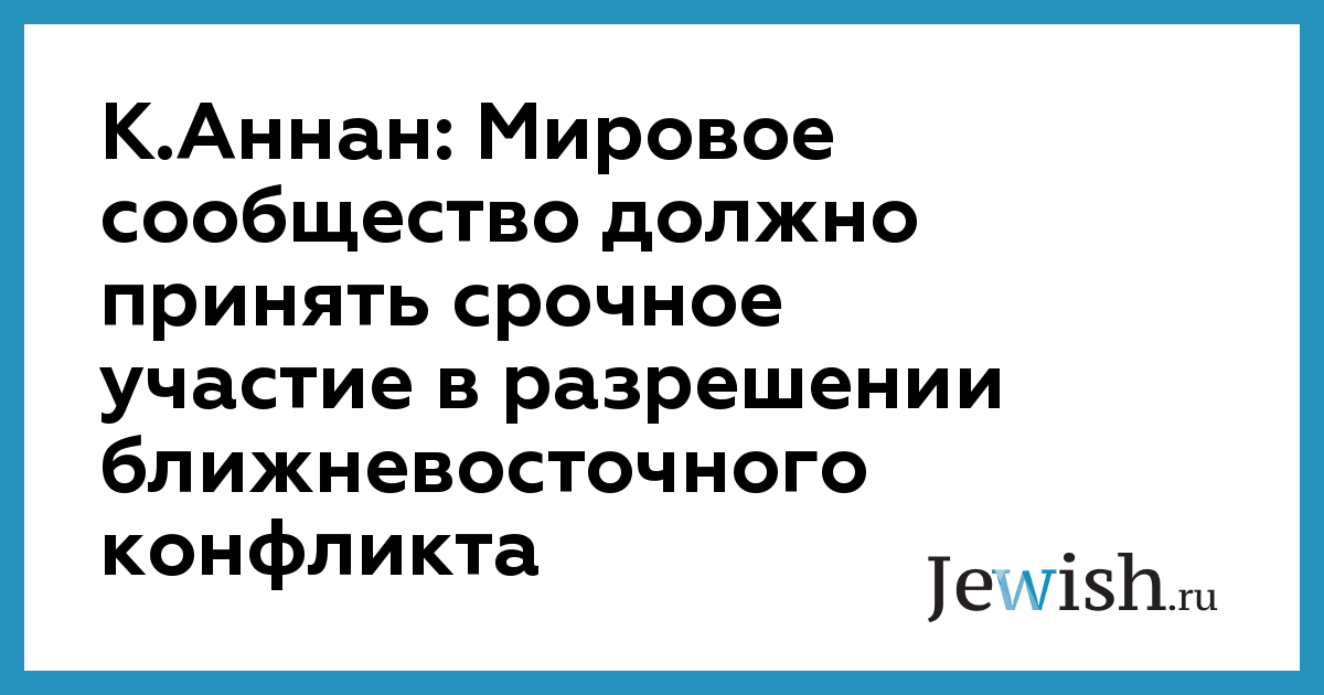К.Аннан: Мировое сообщество должно принять срочное участие в разрешении ближневосточного конфликта