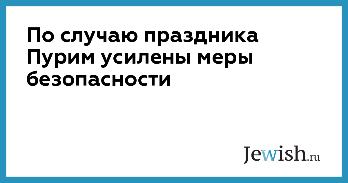 По случаю праздника Пурим усилены меры безопасности