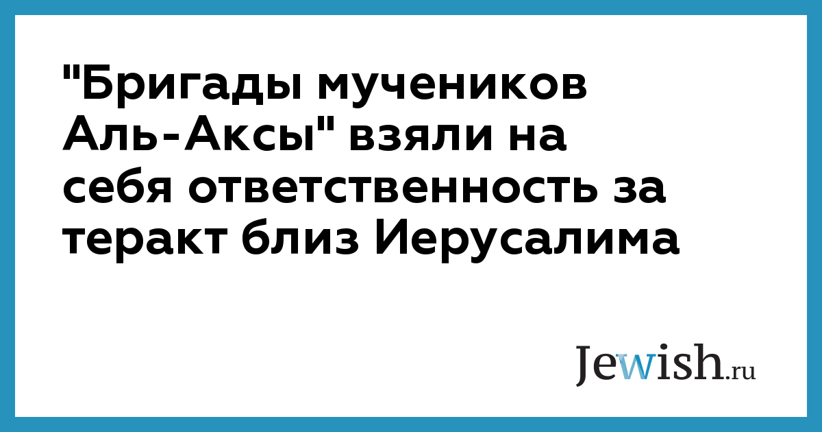 Военная группировка "Бригады мучеников Аль-Акса" объявила о своей ответственности за теракт, который произошел в предместье Иерусалима — Неве-Яков.