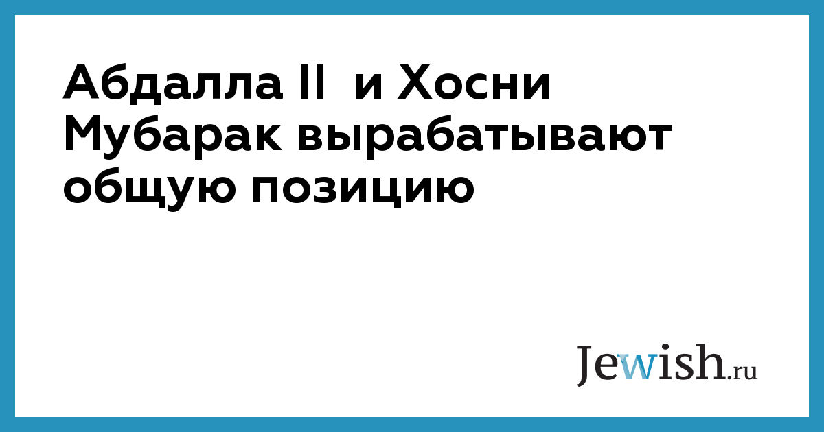 Абдалла II и Хосни Мубарак вырабатывают общую позицию
