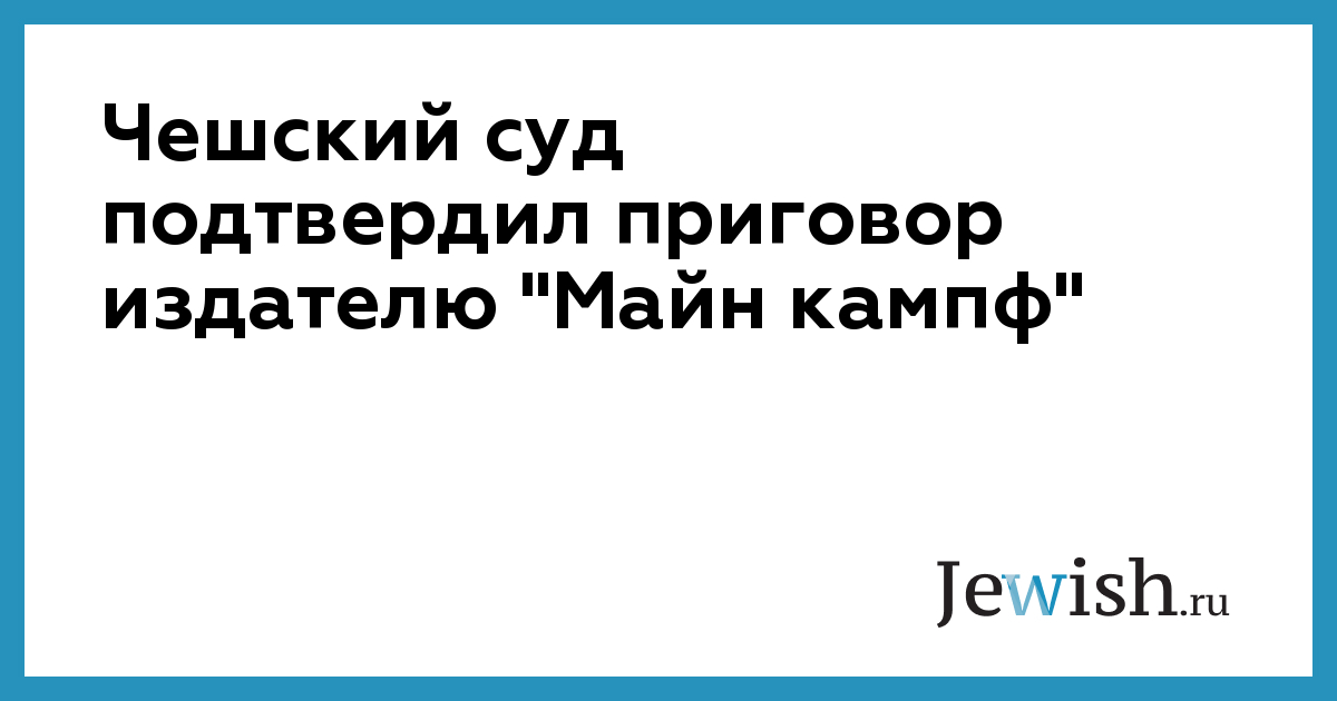 Пражский городской суд подтвердил приговор, ранее вынесенный Михалу Зитко, опубликовавшему «Майн кампф» Гитлера на чешском языке. В ноябре районный суд в Праге приговорил Зитко к трем годам лишения свободы условно и к штрафу в размере пяти миллионов крон по обвинению в «поддержке движения, направленного на подавление гражданских прав и свобод».