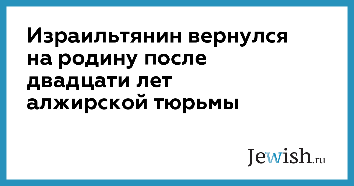 Вчера по первому каналу израильского телевидения было передано о том, что в Израиль вернулся израильский гражданин — араб Имад Хатиб, проведший двадцать лет в тюрьмах Туниса и Алжира по обвинению в шпионаже в пользу Израиля. Двадцать лет назад Хатиб был захвачен в Греции боевиками ООП по наводке родственников Имада, позарившихся на его деньги и заграничный паспорт, сообщает "Седьмой канал". Все эти годы семья не знала о том, где находится Имад и жив ли он вообще. Только два года назад один алжирец передал им весть о том, что Имад находится в тюрьме. Однако лишь месяц назад родственникам удалось установить связь с похищенным израильским гражданином. После этого брат Имада связался с представителями израильского МИДа и представителями ПА, он встречался с Рамалле с Арафатом и добился того, что его брата выпустили из тюрьмы. Позавчера он вернулся домой в деревню в районе Назарета.