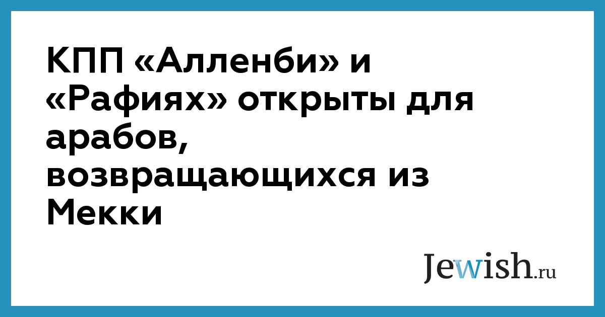 Пограничные пропускные пункты «Алленби» и «Рафиях» увеличат время работы для того, чтобы принять 9000 арабов, возвращающихся в Израиль и автономию из Мекки (Саудовская Аравия). Подобная мера является «жестом доброй воли израильского правительства», сообщает радиостанция "Седьмой канал".