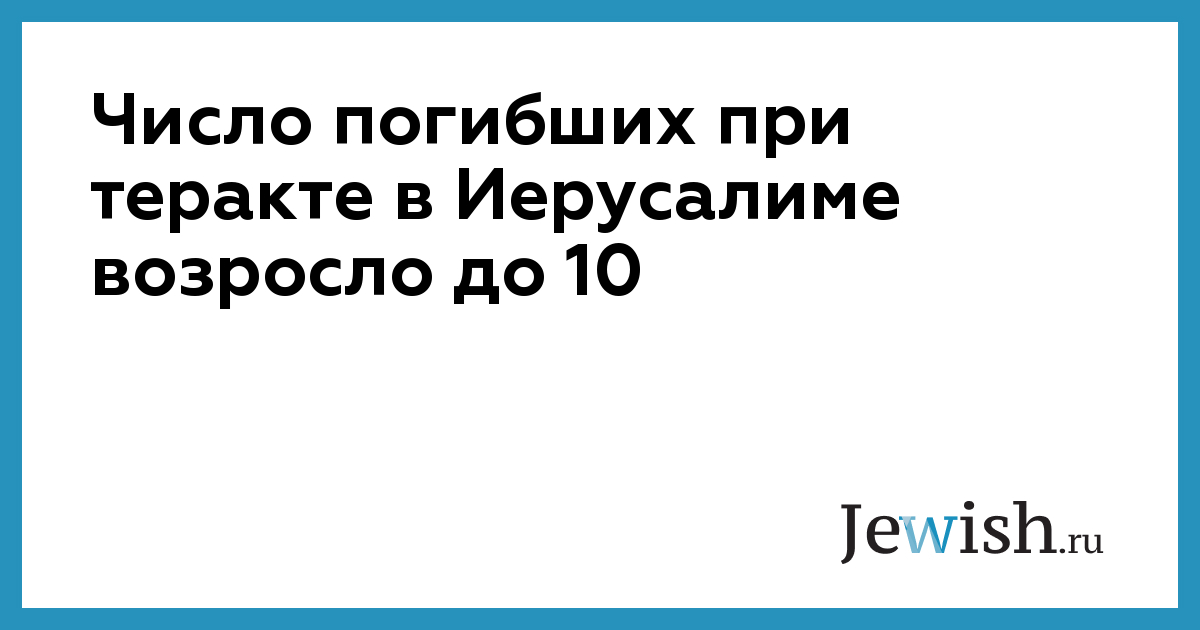 Число погибших от ран, полученных при теракте в субботу в районе Бейт-Исраэль возросло до 10 человек.