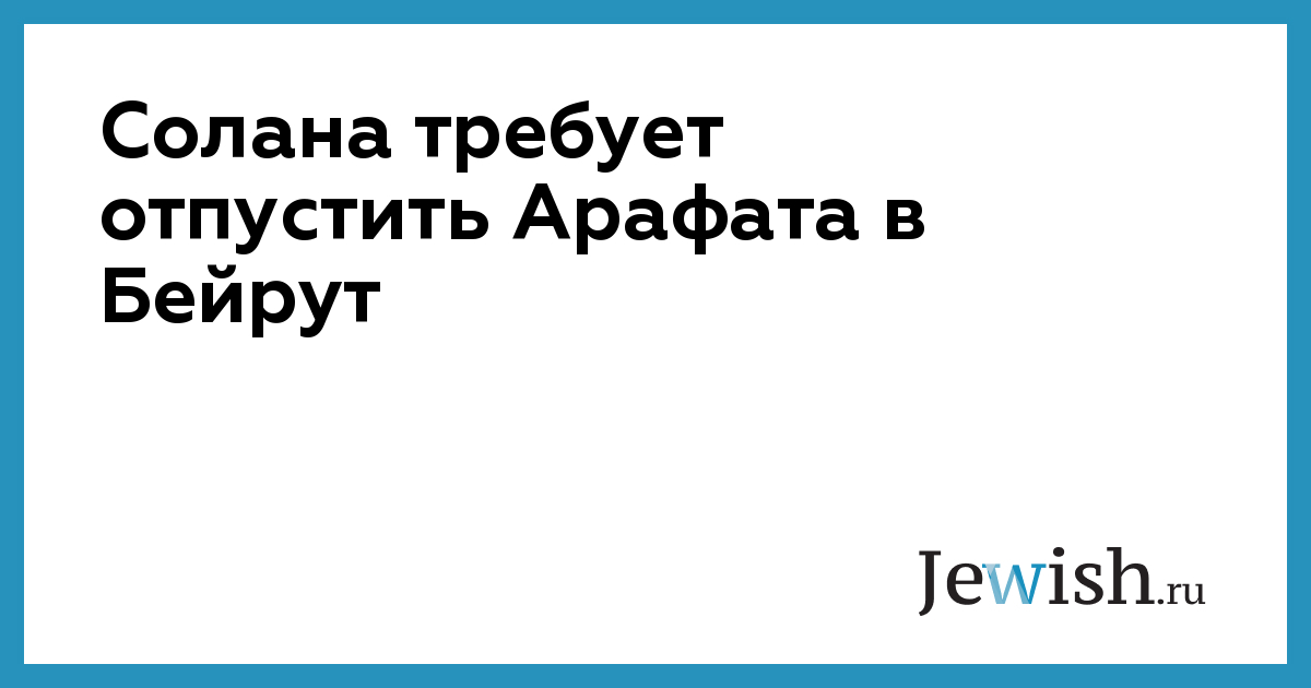 По дороге в Вашингтон комиссар Евросоюза по вопросам внешней политики Хавьер Солана дал интервью Национальному радио Испании, во время которого обратился к израильскому руководству с требованием отпустить главу администрации ПА Ясира Арафата в Бейрут, сообщает Mignews. На том основании, что на саммите ЛАГ, который состоится в столице Ливана 27-28 марта, будет решаться проблема, актуальная и для Израиля. И если израильтяне сделают подобный "жест доброй воли", отметил Солана, то у лидеров арабских и мусульманских стран будет меньше возражений против принятия мирной инициативы Саудовской Аравии. Особенно в условиях нового витка эскалации напряженности, вызванного терактами палестинцев и вооруженными ответами израильской армии. "Мы должны сделать все, чтобы достигнуть мирного соглашения политическими методами", — подчеркнул комиссар ЕС. При этом он добавил, что понимает позицию израильтян, отвечающих военными рейдами на серию кровавых терактов последних дней, однако уверен, что мир на ближнем Востоке — это вопрос, который будут и должны решать дипломаты, но не военные.