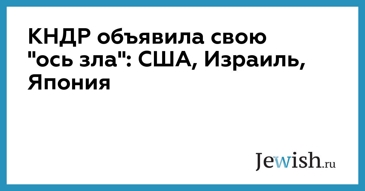 По мнению Пхеньяна, единственная существующая сегодня в мире "ось зла" состоит из США, Израиля и Японии. Статья на эту тему опубликована в официальном печатном органе КНДР "Демократическая Корея". Как полагают в Северной Корее, выпады американцев против КНДР являются "извращением действительности". Их цель — оправдать в глазах мировой общественности продолжение американской кампании по борьбе с терроризмом. Что касается Израиля, то северокорейцы обвиняют эту страну в непрекращающихся нападениях на палестинские территории, что доказывает "истинную сущность агрессора". Кроме того, в КНДР резко осуждают запуск космической ракеты H2A, произведенный в прошлом месяце Японией. По мнению Пхеньяна, развитие космической программы может быть использовано Токио в военных целях. "Израиль и Япония во всем следуют за США", заключает "Демократическая Корея".